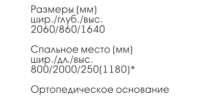 • Спальное место (ШхГхВ), мм: 800х2000х250/1180(+ высота матраца)