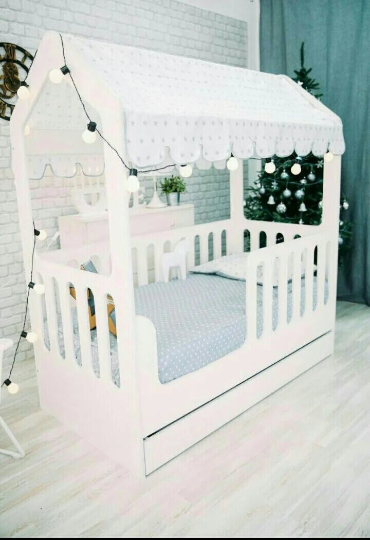 Эта удивительно красивая детская кроватка идеально подойдёт под интерьер любой детской комнаты! Очень компактная и эргономичная: спальное место ночью, игровая зона днем!