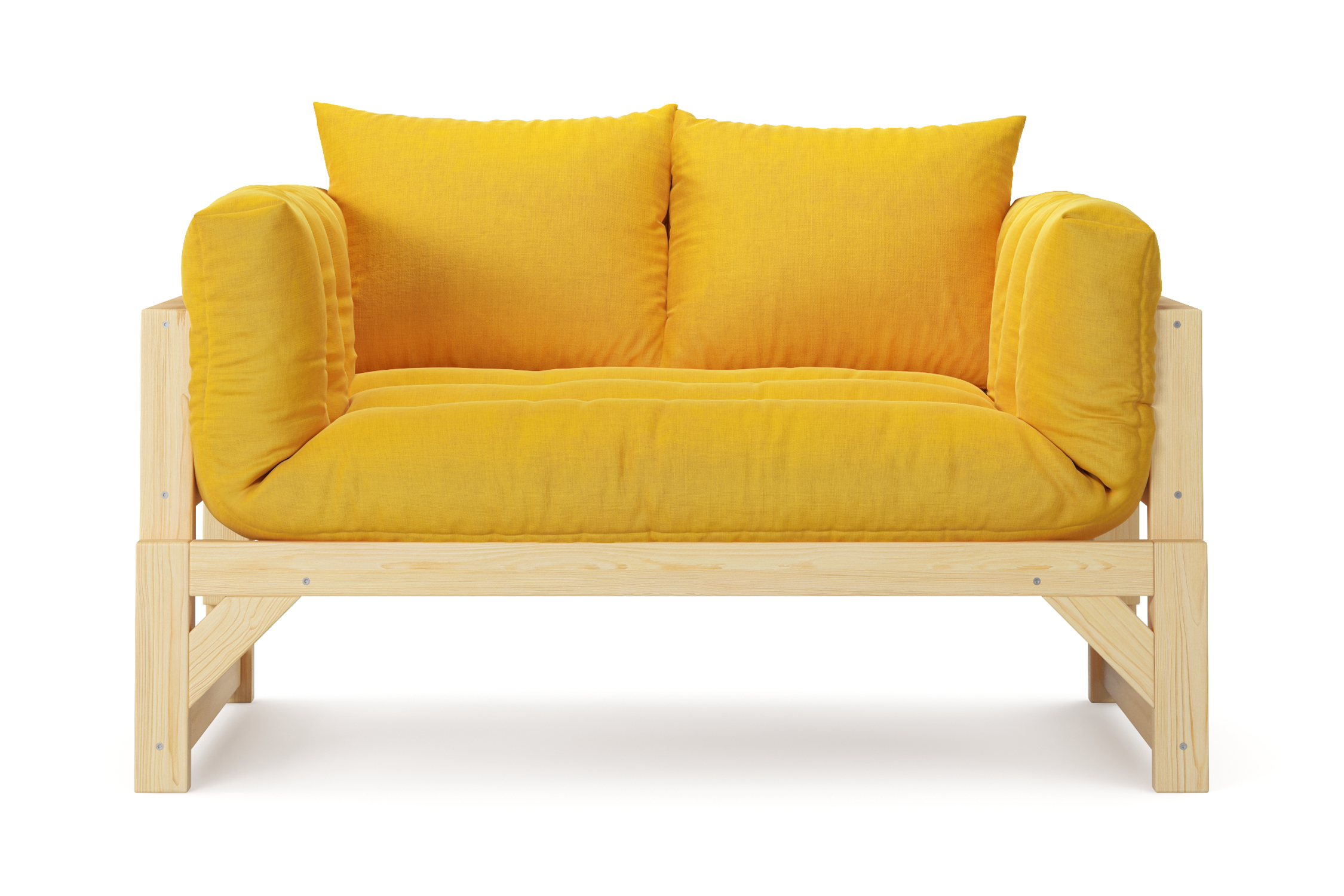 Максимальная нагрузка — 220 кг. Ширина деревянной спинки 130 см. Приспинные подушки, представленные на фото, входят в комплект. Декоративные приобретаются отдельно. Диван продается без лакокрасочного покрытия, под самостоятельную покраску. Высота сиденья без матраса - 31 см, с матрасом 46 см.