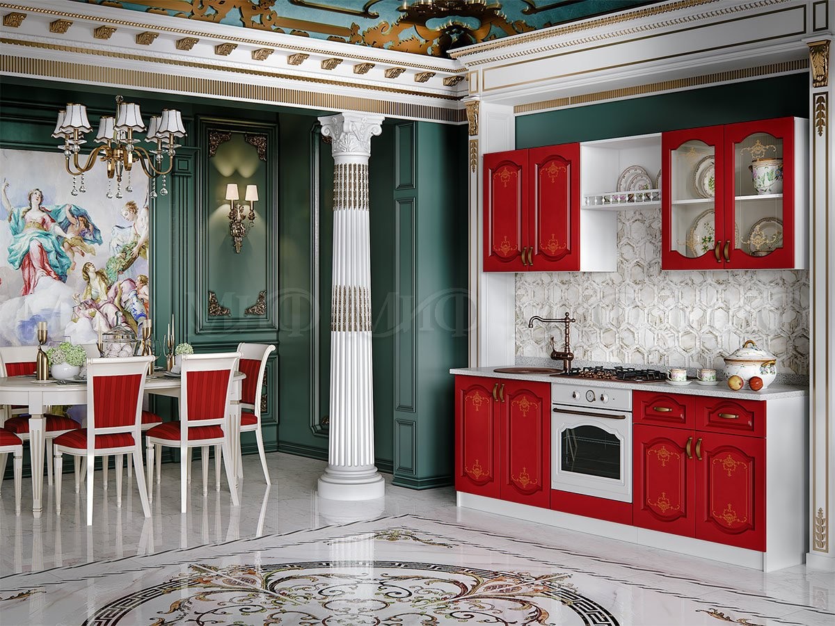 • Классическая кухня «Версаль» очарует вас своим исполнением и красивой цветовой гаммой. Ненавязчивый, нежный рисунок на фасаде идеально гармонирует со стилем и дизайном кухни. С таким кухонным гарнитуром не стыдно принять гостей и приятно провести время в семейном кругу или с друзьями.